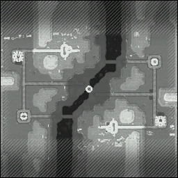 Each side starts with a fortress that has 5 sockets. The closest outpost is a neutral powerstation that is occupied by 4 Soldiers, it is also defended by 2 T45's on sockets. The next outpost afterwards is a neutral factory that is occupied by 4 Brutes, it is also defended by 2 T45's on sockets. The center outpost is occupied by 4 Brutes and is defended by 2 Longhorns and 2 T99's on sockets. On each side there is a bridge, they are defended by a group of neutrals that consists of 2 T99's and 2 Longhorns.