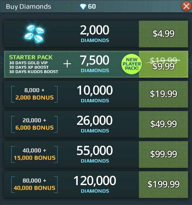 $4.99 | 2000 Diamonds |