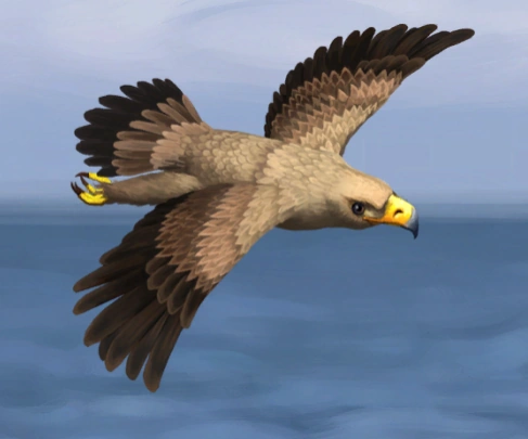 This Tawny Eagle was domesticated and trained to follow your AirMech in combat! Almost like a dog that could fly, without needing an jetpack, I suppose.
