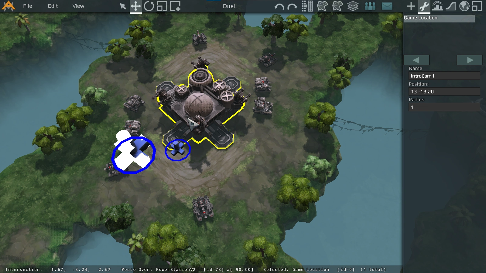 - The only Game Location is the "Circle," which is used for setting positions for the pre-game camera (put the label as IntroCam# where "#" is the order you want the camera to go, starting at 1. For examples, see any Official map) and scripting.