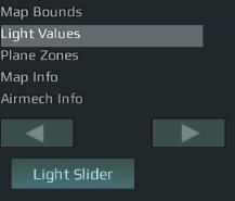In this section, you have the ability to adjust the lighting in your map. It is suggested that you use the Light Slider tool, as shown in an image to the right, which can be accessed using a button on the top o the interface. You can alternatively enter the data directly into the boxes below the Light Slider button. It is recommended that you only do this if you are looking for precise colors or values.
