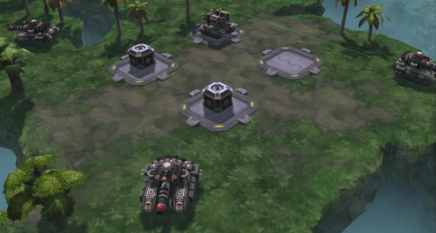 Superbusters, Gorgons and Ratchets all defending the middle Outpost of the Vulcus custom map.